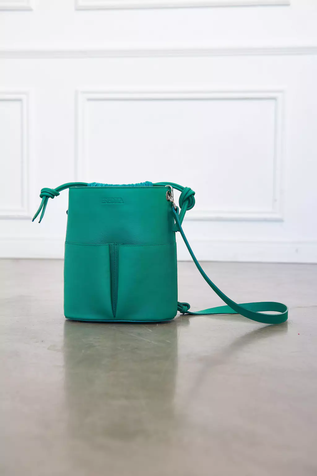 El diseño presenta dos bolsillos frontales y un gran compartimento central. Con su correa ajustable, podes llevarla cruzada o al hombro. El compartimento principal se cierra con un cordón.